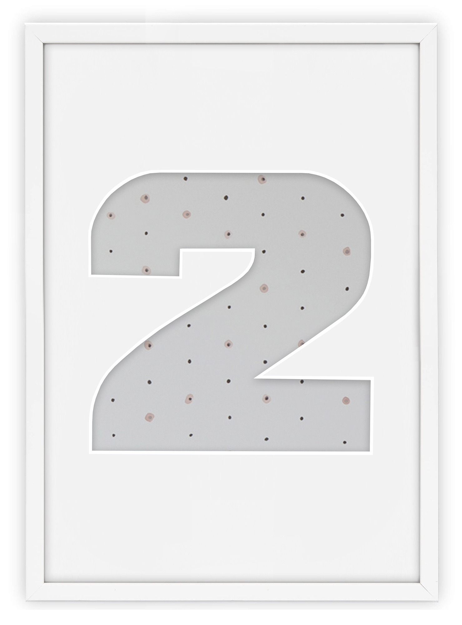 Ramka CYFERKA "2" Biała. Ramka z passe partout o rozmiarze 21x30 cm