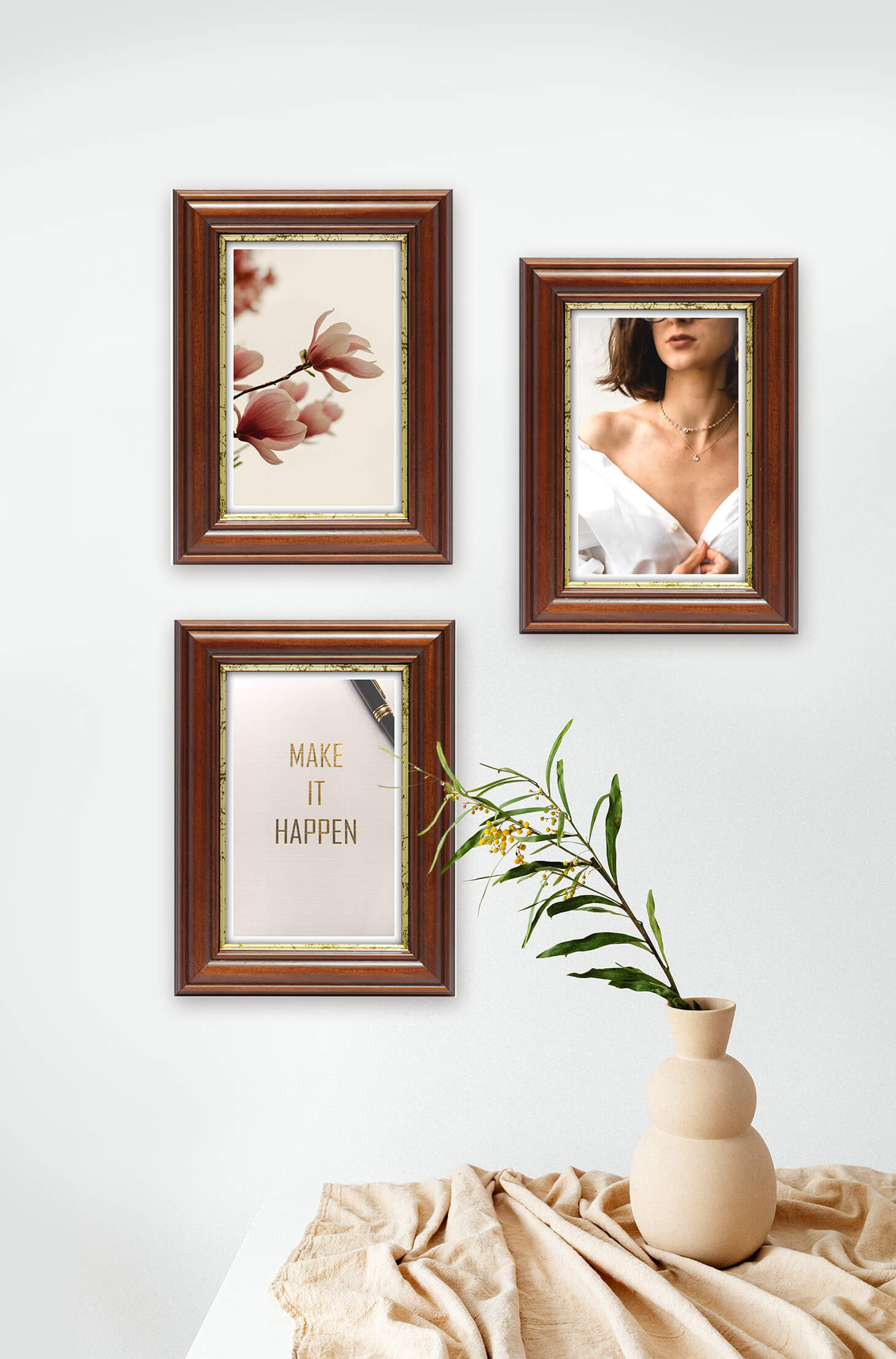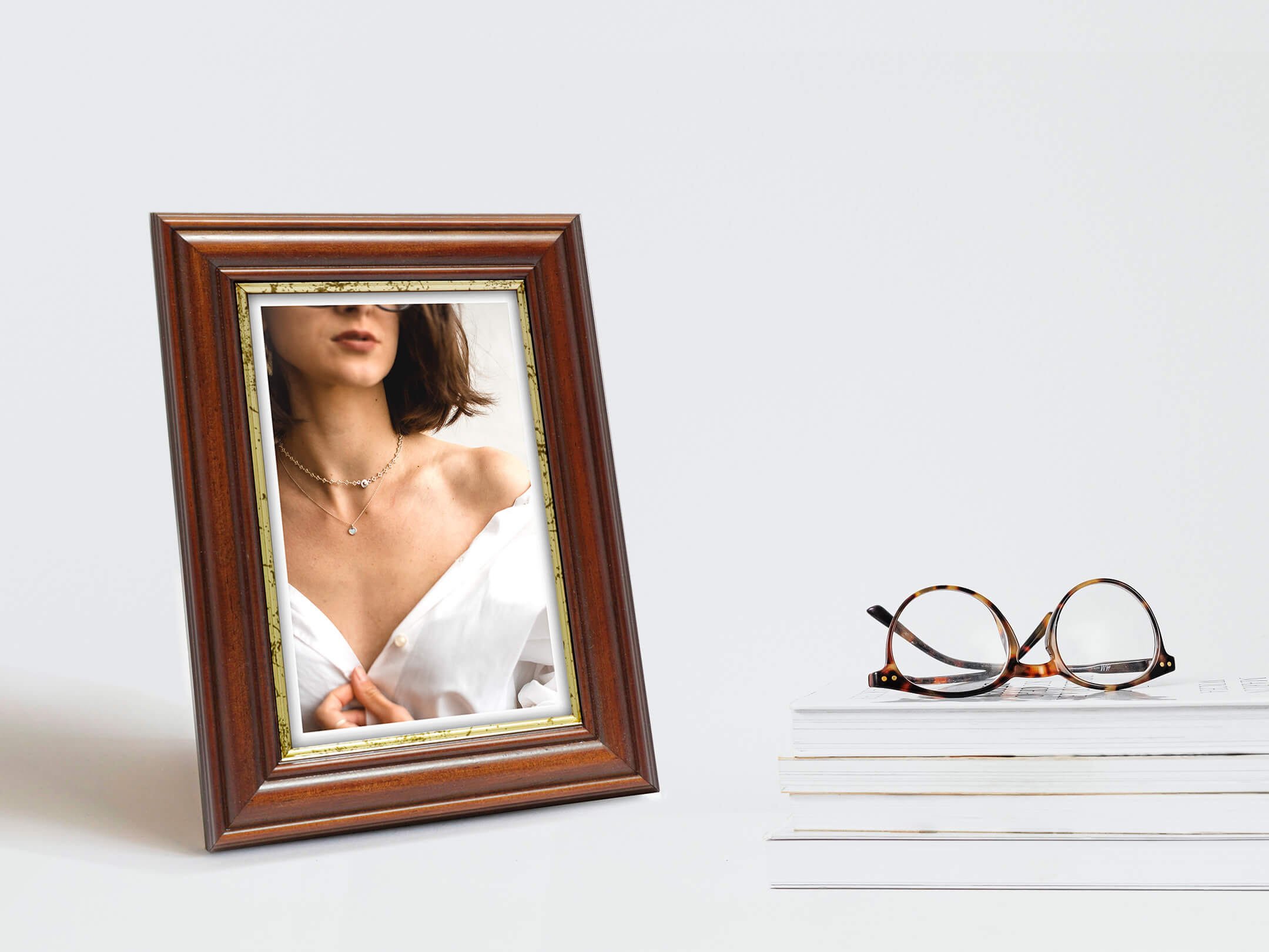 W ofercie Decorantes.plTM posiadamy ramkę DRL F 3 w kolorze brązowym ze złotym paskiem. Klasyczna i elegancka linia pozwala w piękny sposób oprawić fotografie, grafiki, dyplomy lub plakaty. Wykonana została 100% drewna o przekroju profilu 27x15 mm nadając dużą sztywność i trwałość..