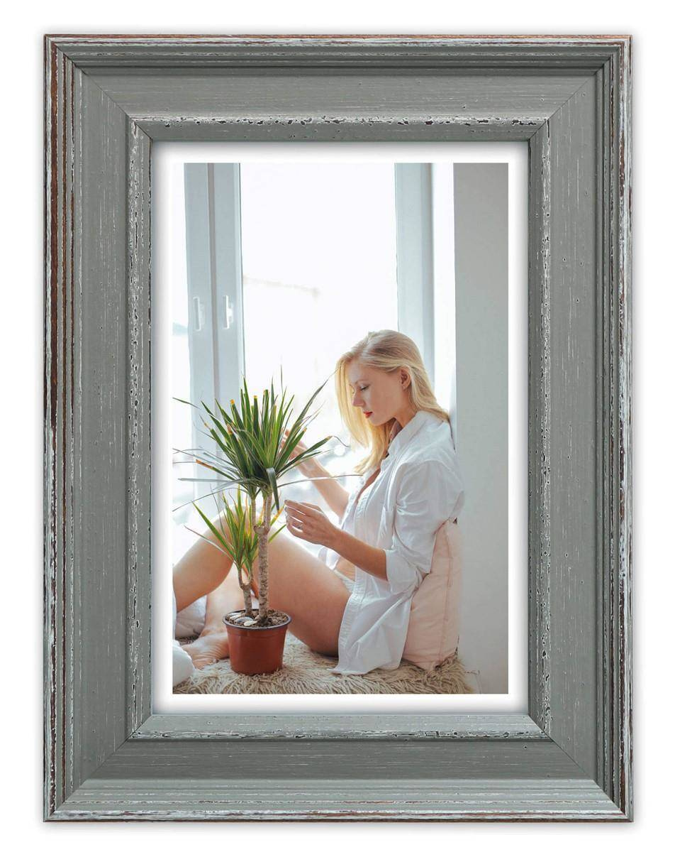 Ramka drewniana na zdjęcia z serii DRL Z 02 w kolorze szarym z pięknymi przetarciami to stylowy i elegancki sposób na oprawę ulubionych zdjęć, plakatów lub dyplomów. Sam styl linii i przetarć będzie także wspaniałym prezentem dla osoby bliskiej. Rama wykonana została w całości z drewna sosnowego o przekroju profilu 25x21 mm dzięki czemu całość będzie wyglądać wyjątkowo w każdym pomieszczeniu.