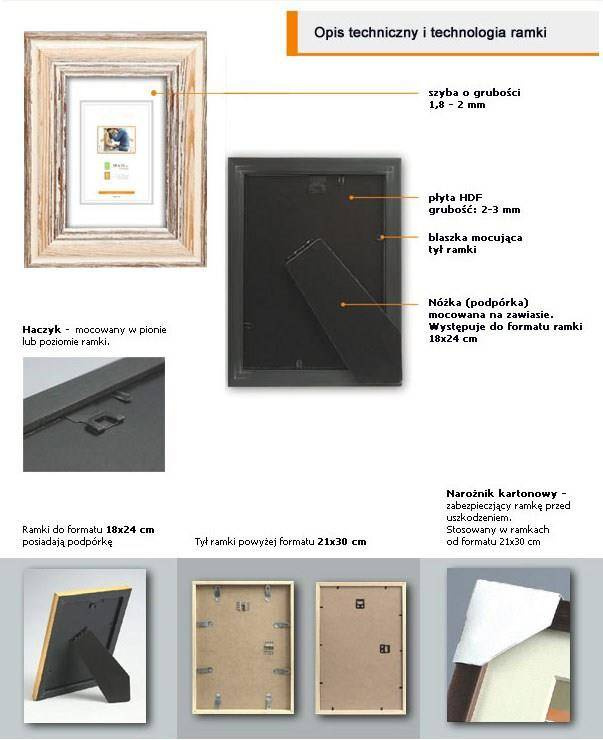 Oferowana ramka DRZ D 3 w rozmiarze 13x18 cm została stworzona z ramy o profilu 40x14 mm (szerokość, wysokość). Z przodu oprawione zdjęcie/grafika/dyplom chronione jest szkłem mineralne o grubości 2 mm. Z tyłu plecki wykonane z twardej płyty HDF. Ramka oprócz wieszaka do powieszenia na ścianie dodatkowo posiada stopkę / nóżkę która pozwala postawić ramkę na biurku lub regale.