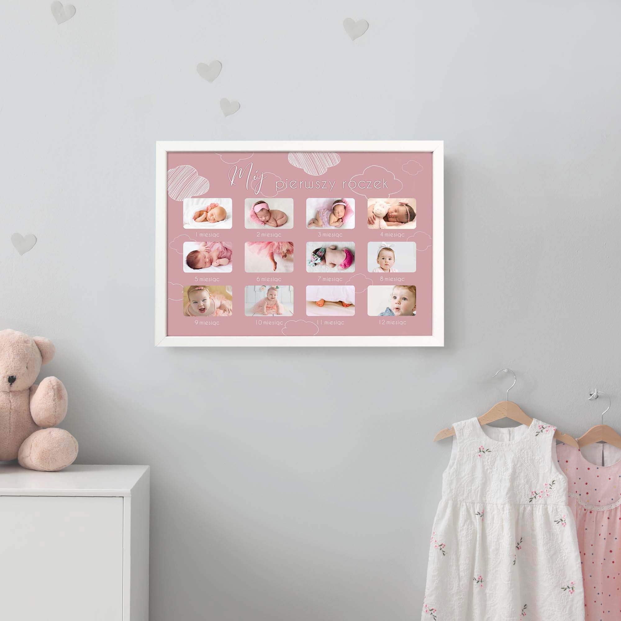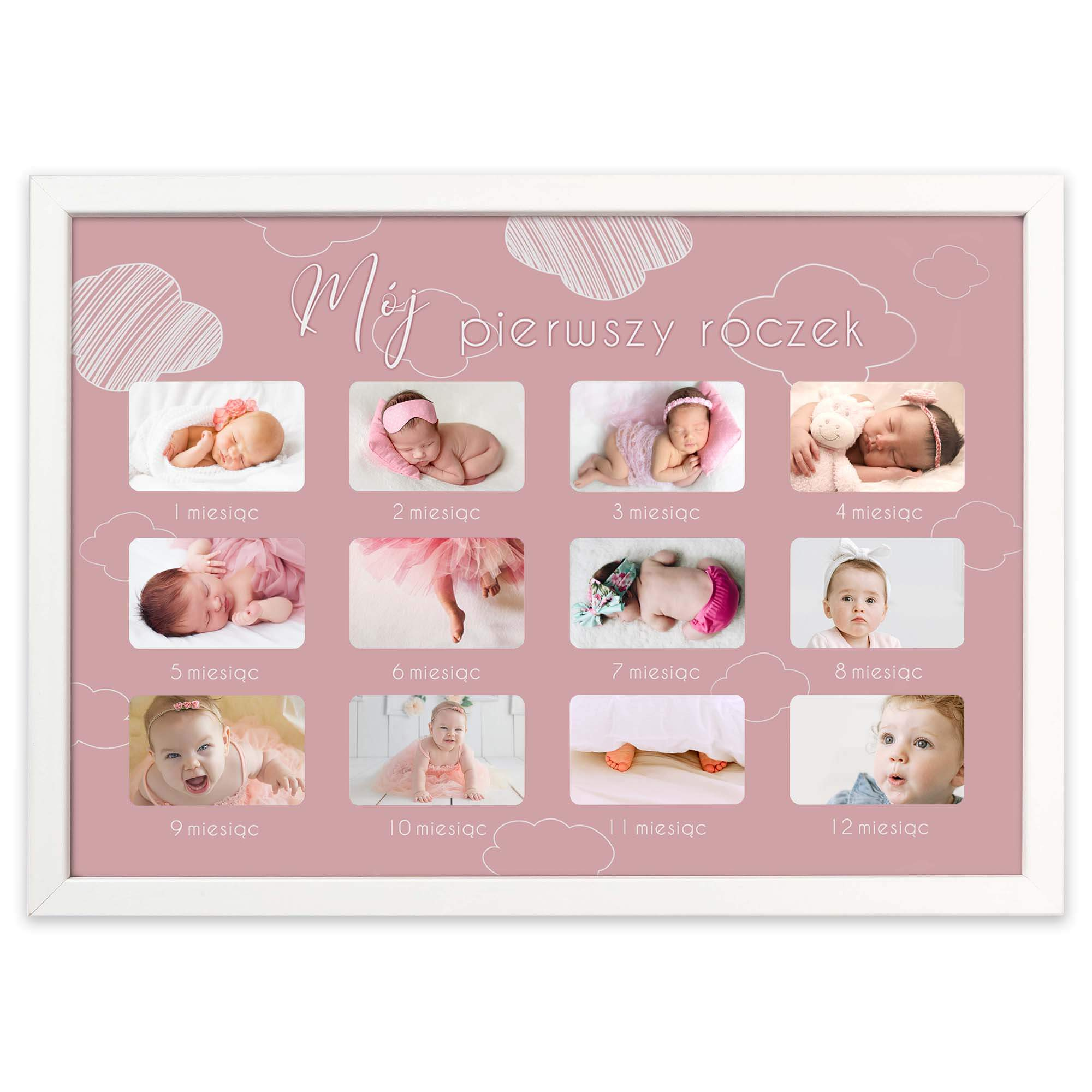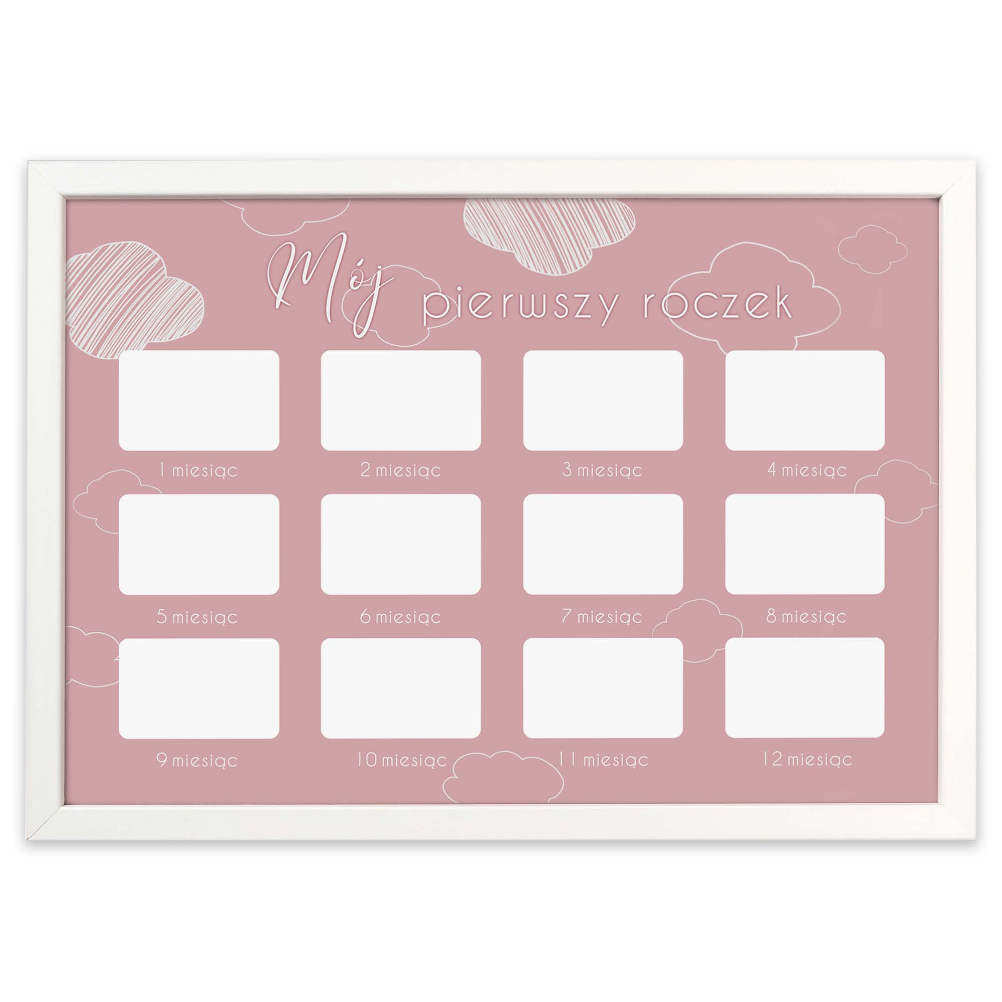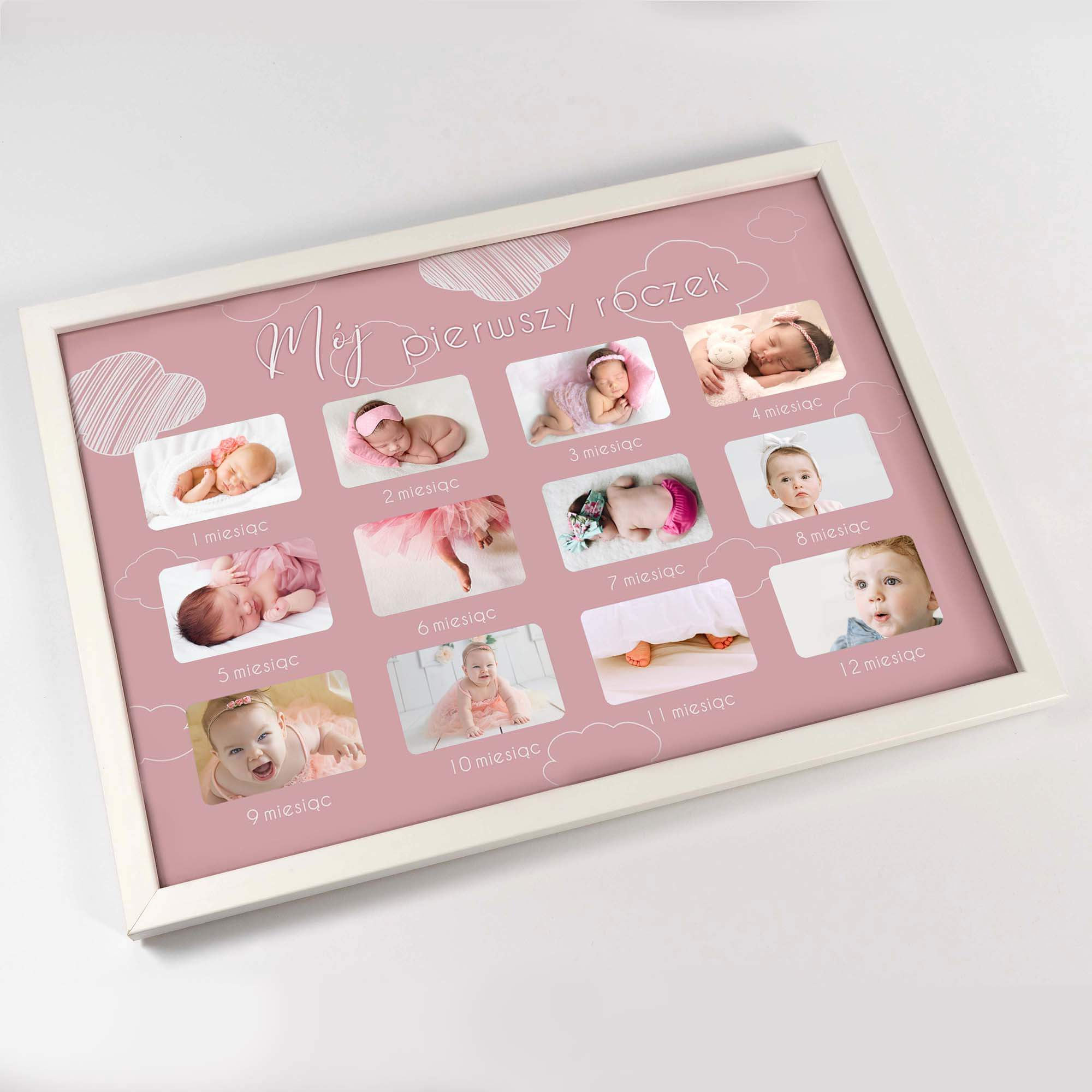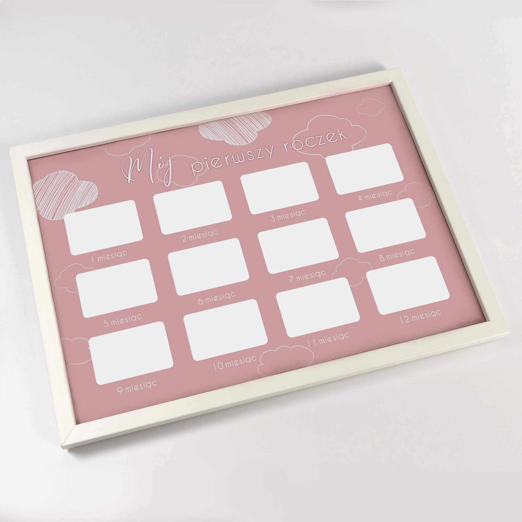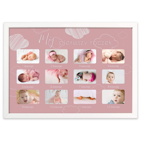 Ramka na zdjęcia kalendarz MÓJ PIERWSZY ROCZEK - DZIEWCZYNKA. Ramka z passe partout o rozmiarze 21x30 cm