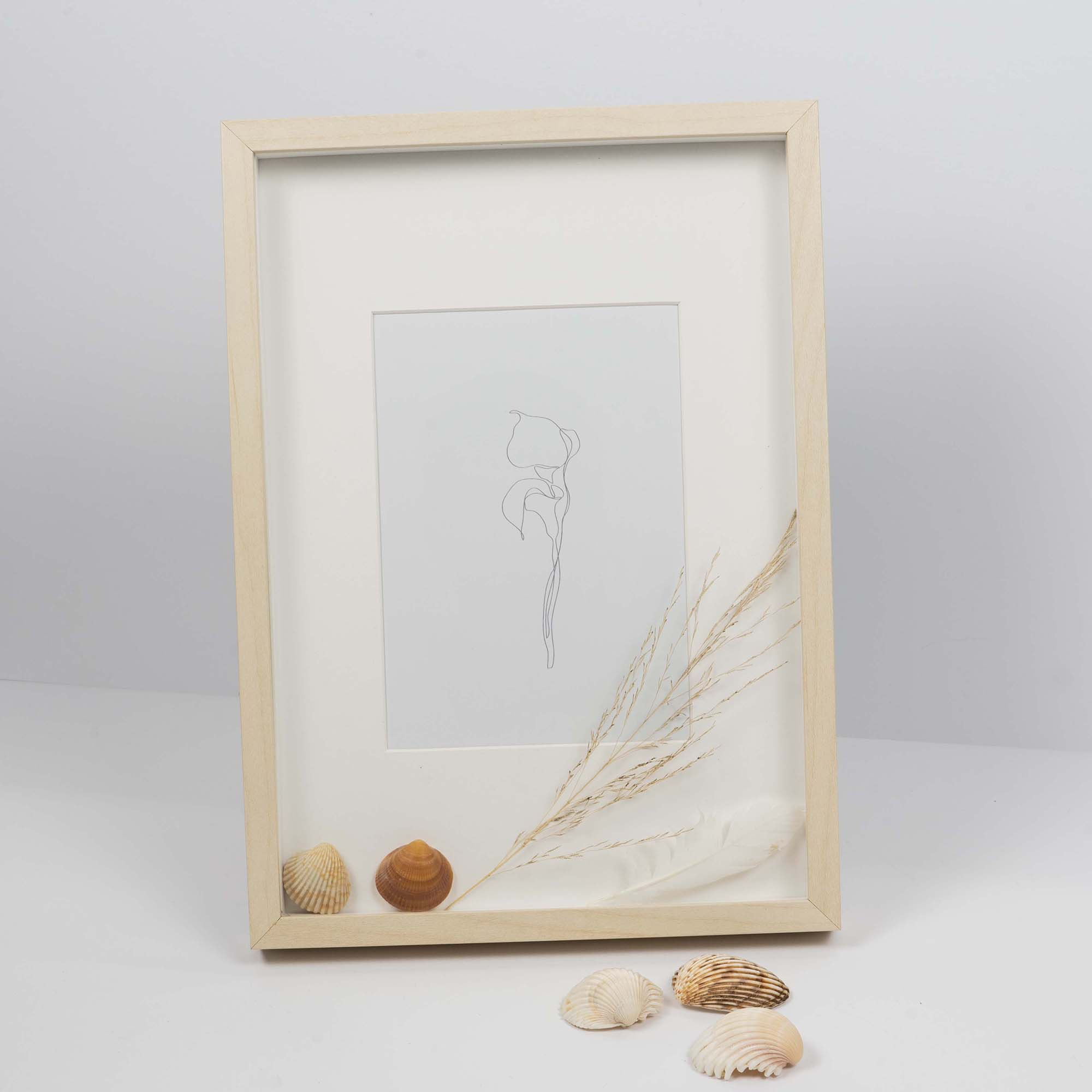 Ramka 3D z passe partout - SORA BI w kolorze jasnego drewna 21x30 cm (13x18 cm)