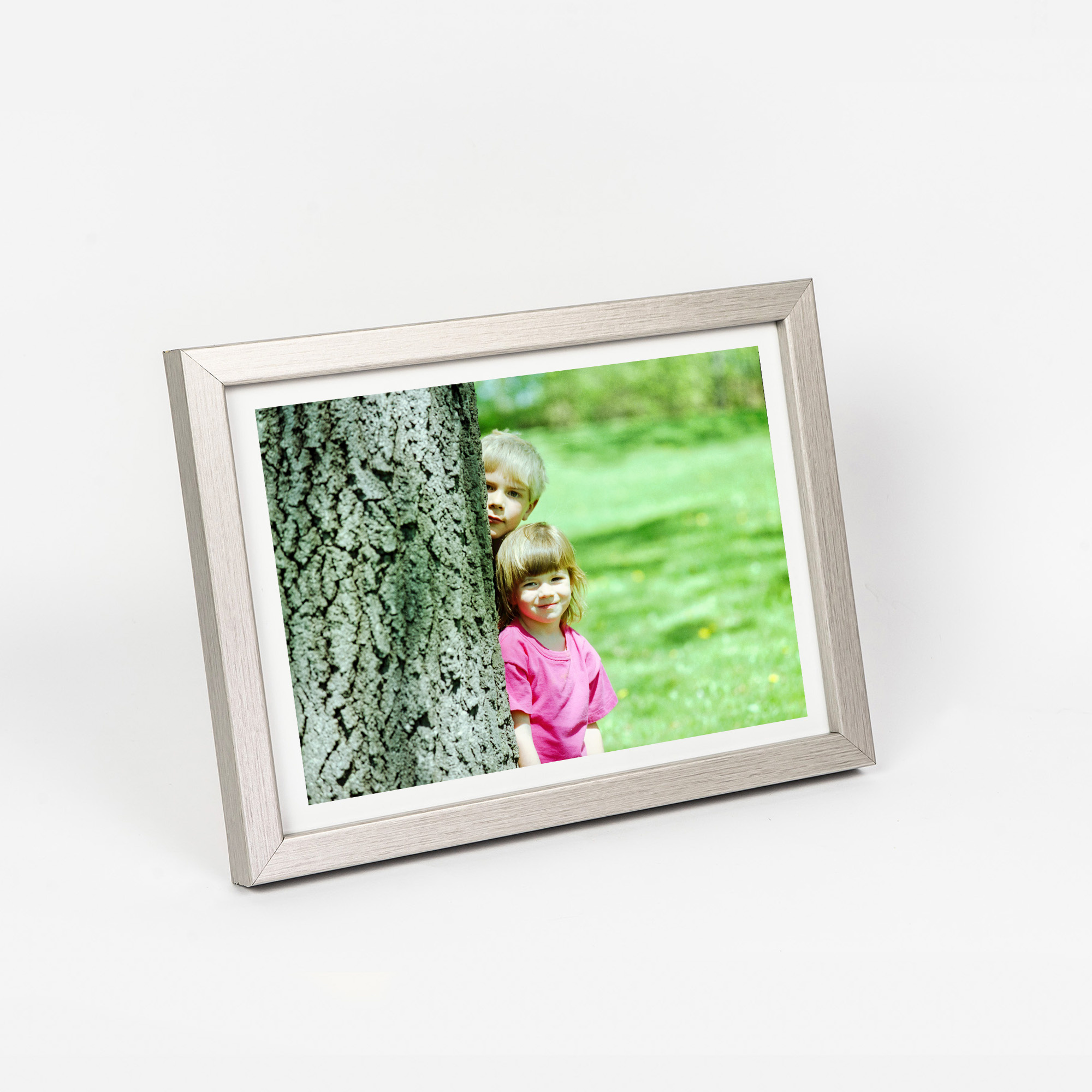 Podkreśl wyjątkowość swoich wspomnień dzięki naszej eleganckiej srebrnej ramce o wymiarze 15x21 cm. Wykonana z wysokiej jakości EKO MDF, doskonale komponuje się z nowoczesnymi i klasycznymi wnętrzami. Jej subtelny, srebrny kolor oraz minimalistyczny design nadają elegancji każdej fotografii, plakatowi czy grafice.