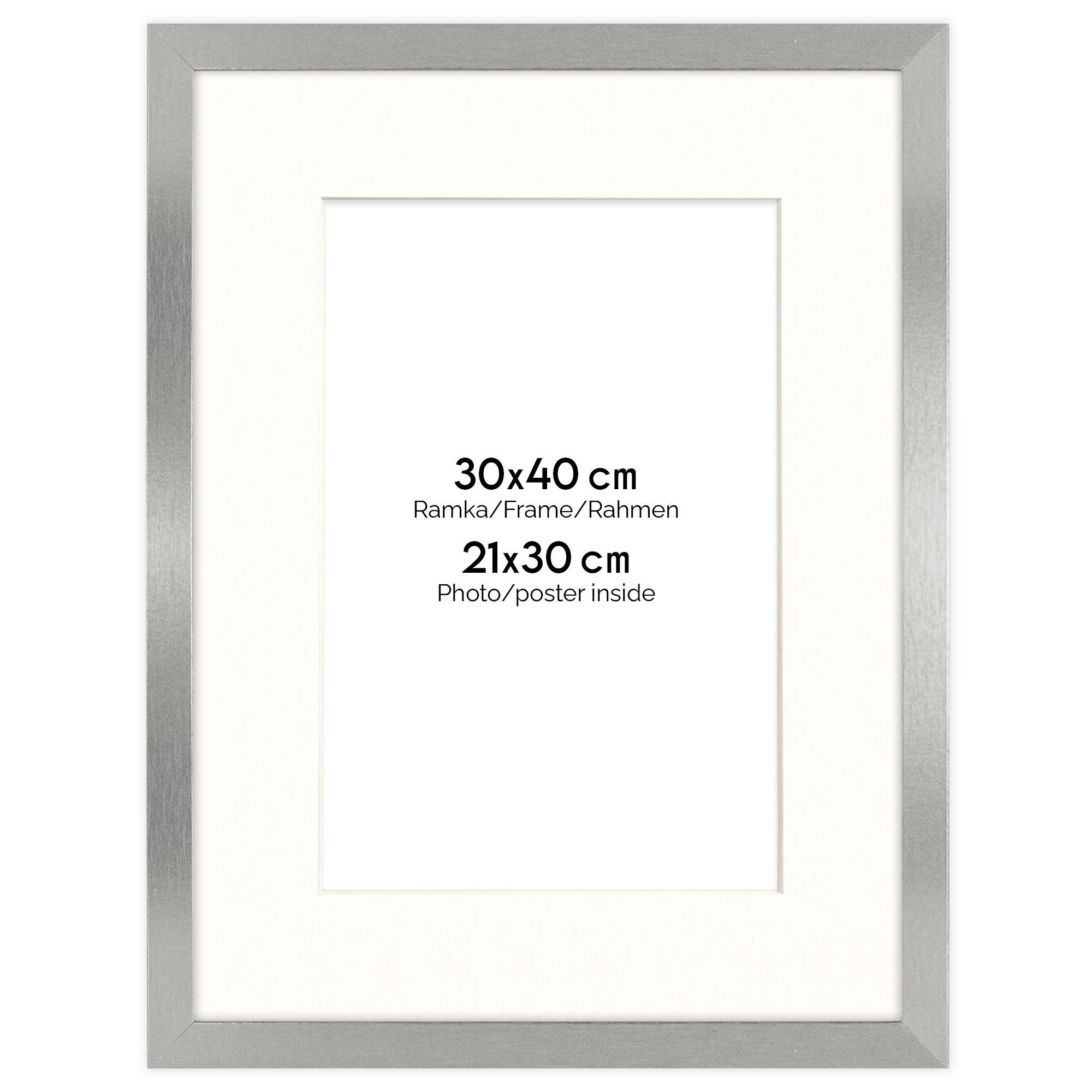 Ramka srebrna HEN PASS S z passe-partout – rozmiar 30x40 cm (okienko 21x30 cm)