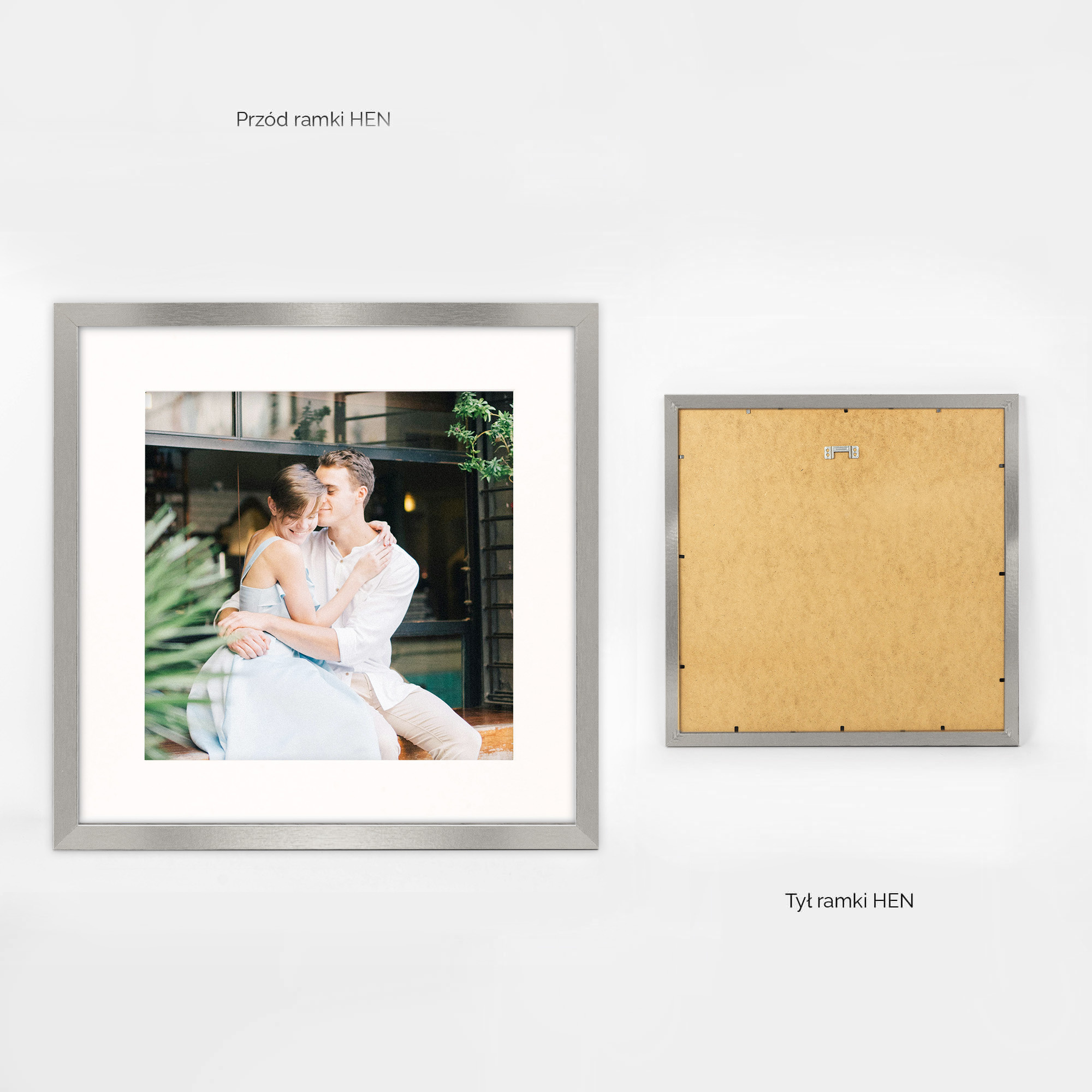 Odkryj wartość swoich najcenniejszych wspomnień dzięki naszej eleganckiej ramce HEN o rozmiarze 40x40 cm, wyposażonej w passe-partout z 30x30 cm. Precyzyjnie wykonana w kolorze brązowym z wysokiej jakości EKO materiału, doskonale podkreśla piękno zdjęć, grafik i plakatów. Minimalistyczny design, szerokość profilu 20 mm, oraz klasyczna forma sprawiają, że pasuje do każdego wnętrza.