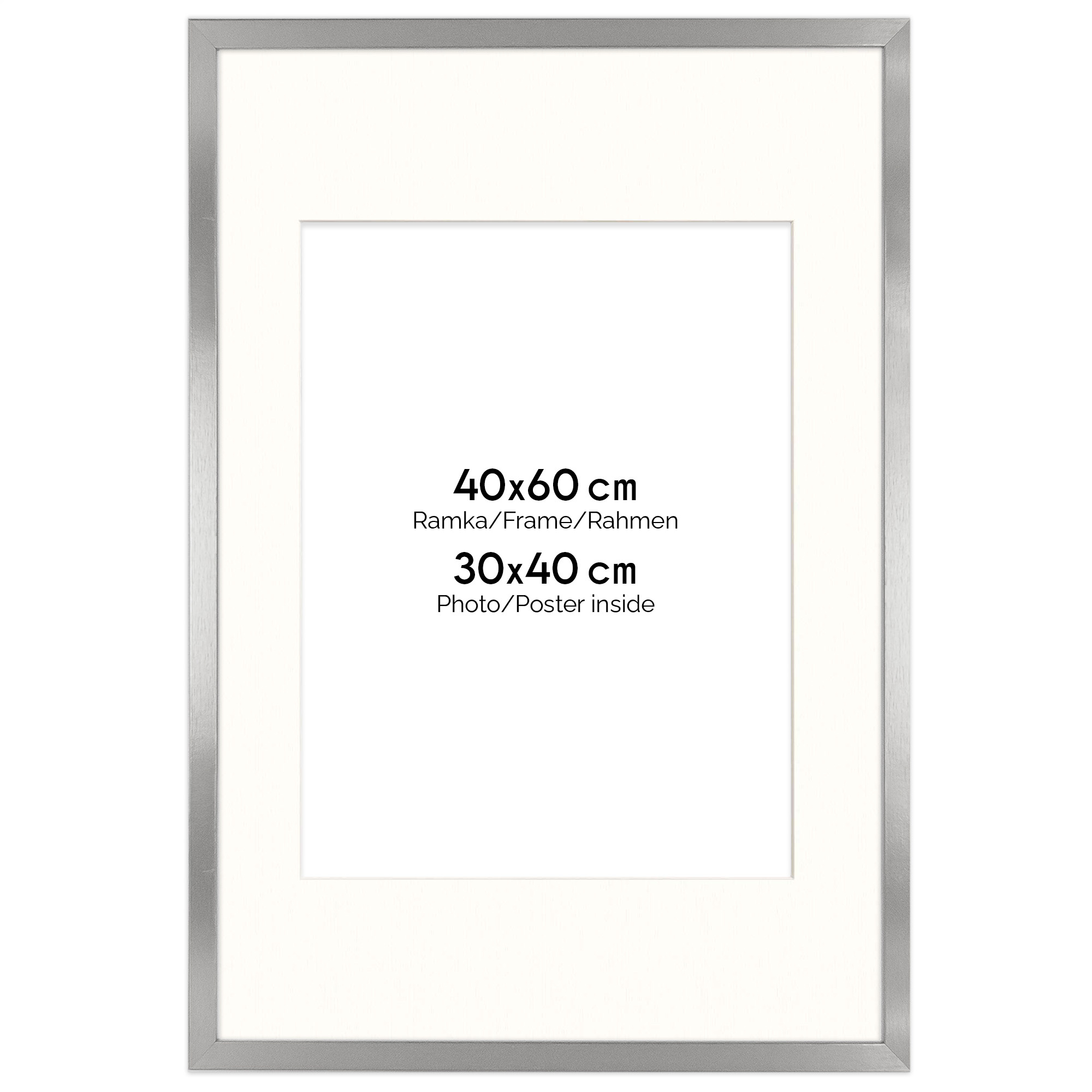 Ramka srebrna HEN PASS S z passe-partout – rozmiar 40x60 cm (okienko 30x40 cm)