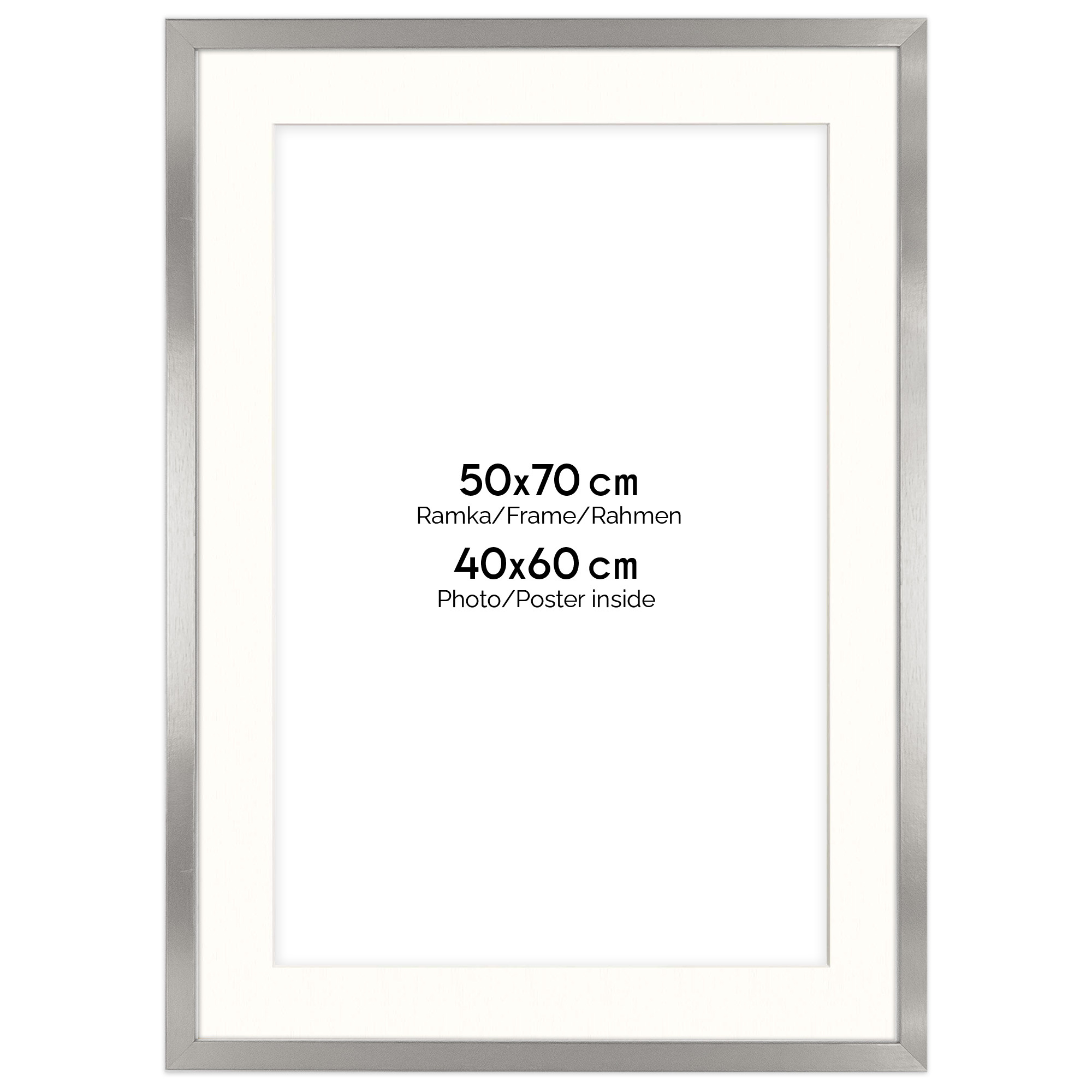 Ramka srebrna HEN PASS S z passe-partout – rozmiar 50x70 cm (okienko 40x60 cm)