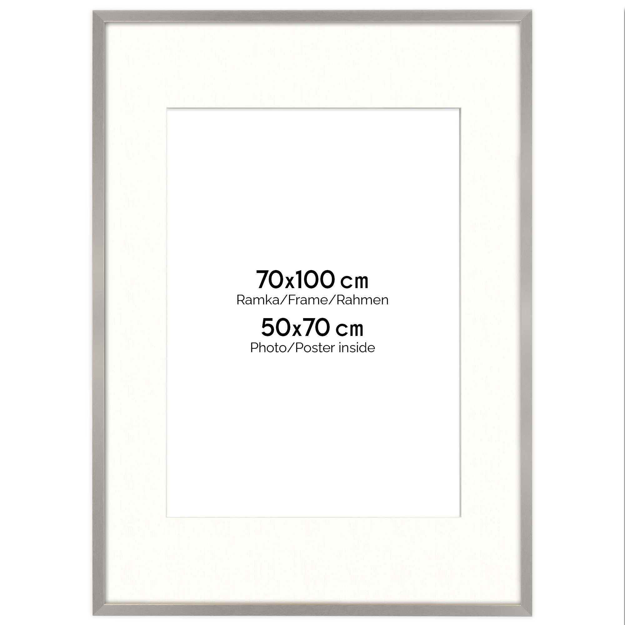Ramka srebrna HEN PASS S z passe-partout – rozmiar 70x100 cm (okienko 50x70 cm)