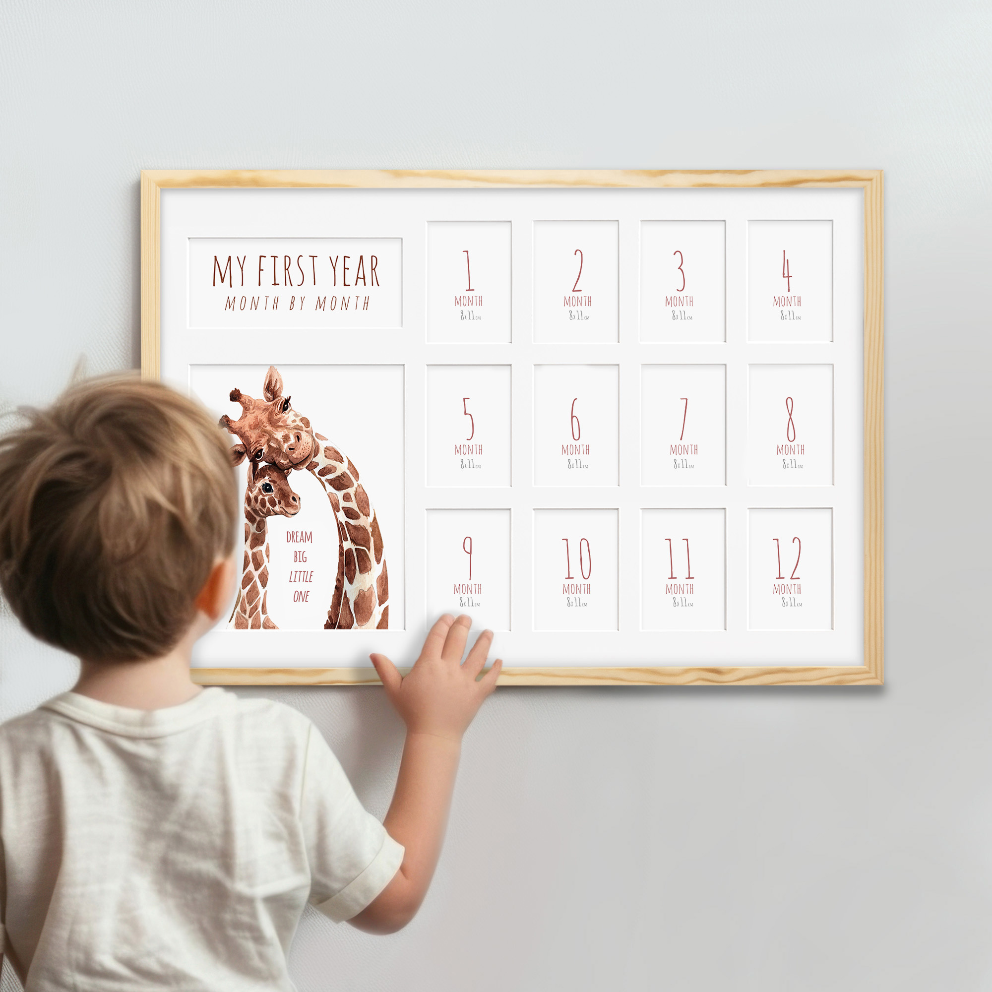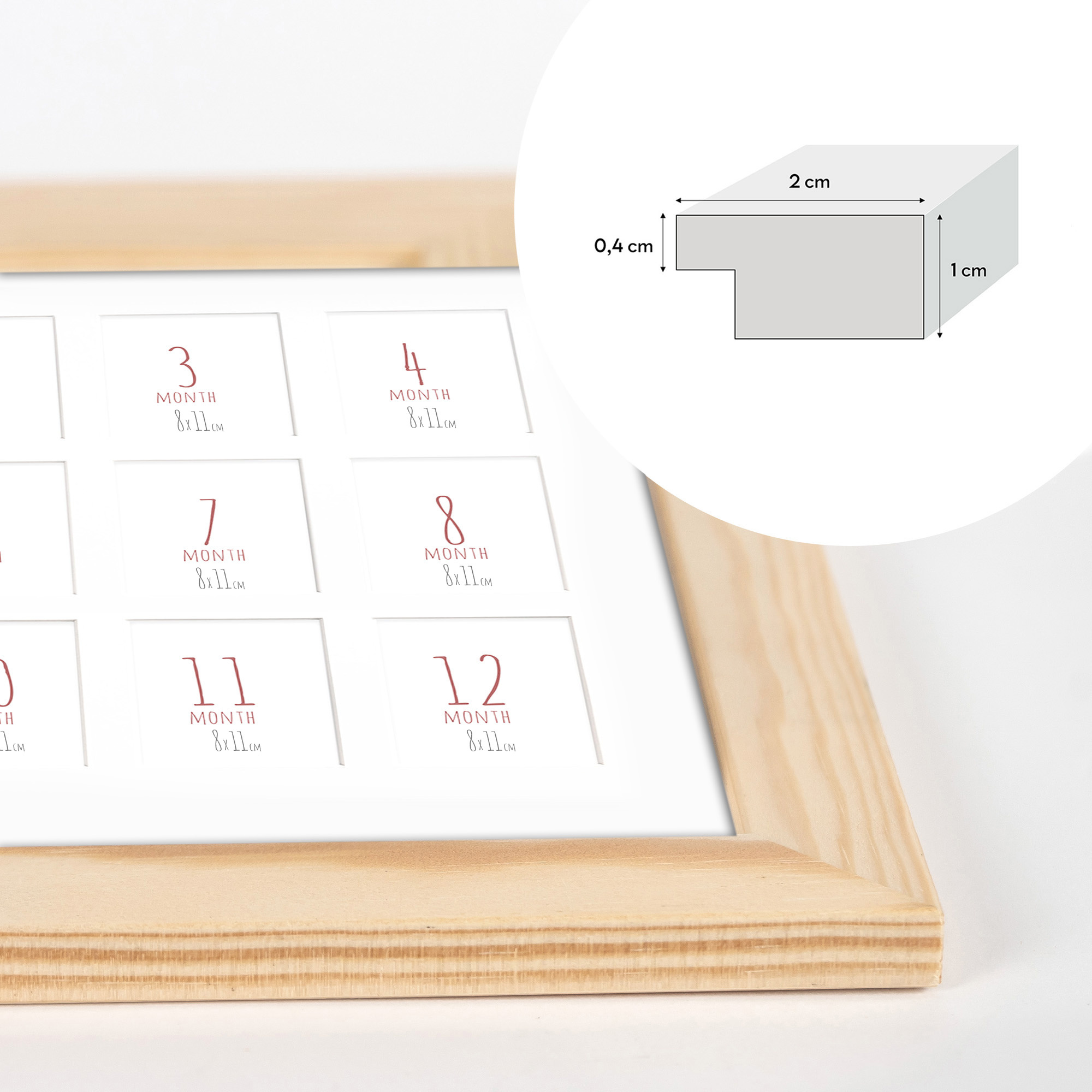 12 miejsc na zdjęcia o wymiarach 8x11 cm – idealne na każdy miesiąc życia