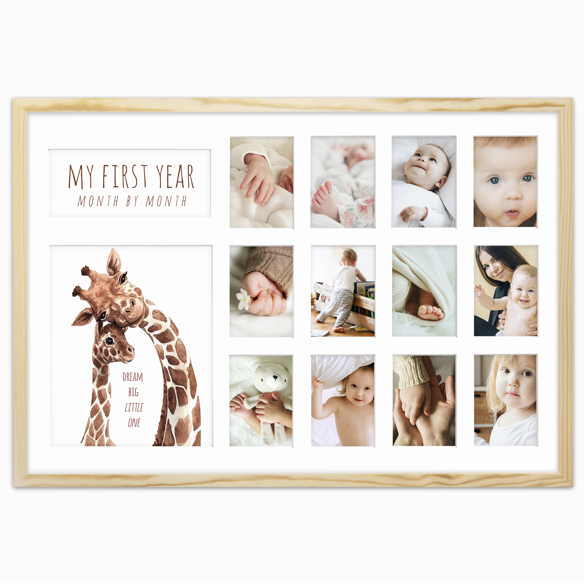 Ramka z drewna kalendarz PIERWSZY ROCZEK - kolaż na 13 zdjęć
