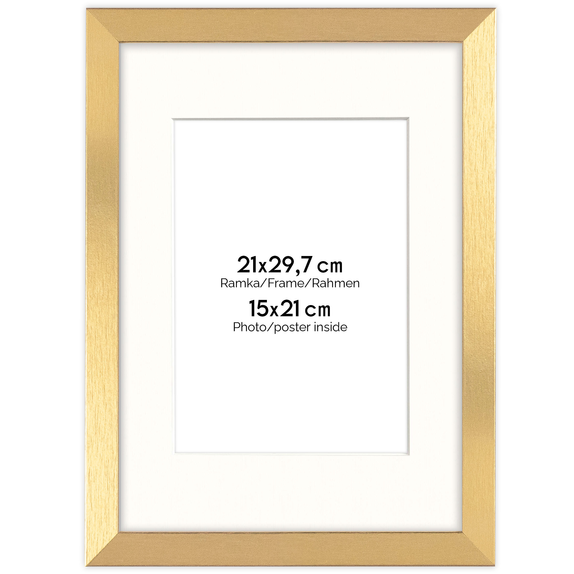 Charakterystyka złotej ramki HEN 21x29,7 cm z passe-partout: