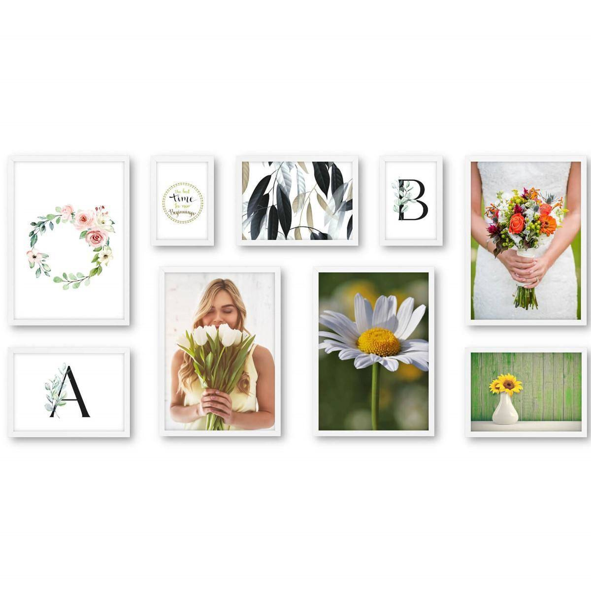 • Zestaw ramek w kolorze białym PINIA 1 GF0004 galeria ścienna zawiera ramki do zdjęć: 2 x 10x15 cm, 3 x 15x21 cm, 4 x 21x30 cm. Wymiar całkowity kompozycji 109x53 cm.