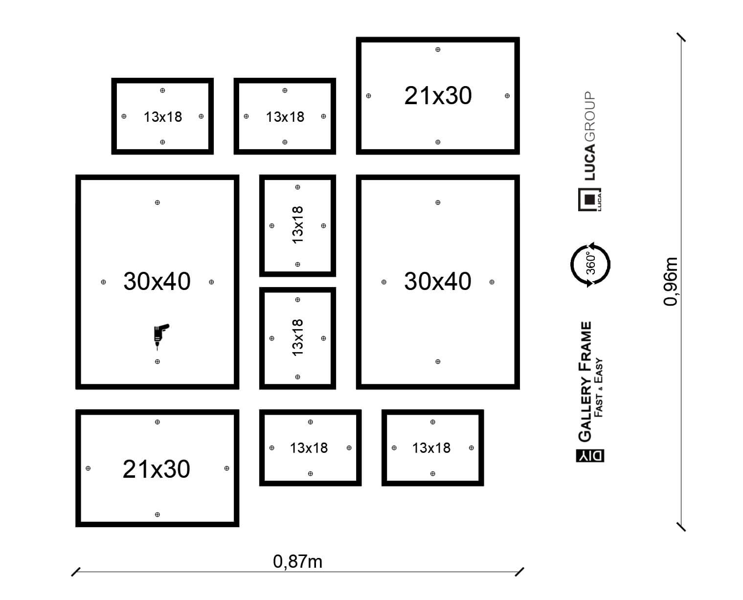 Prezentowane szablony galerii ściennych DIY Gallery FrameTM są własnością LUCA GROUP i podlegają ochronie prawnej. Kopiowanie, powielanie i rozpowszechnianie bez pisemnej zgody jest zabronione.