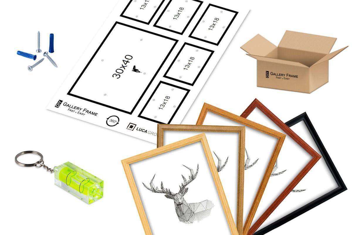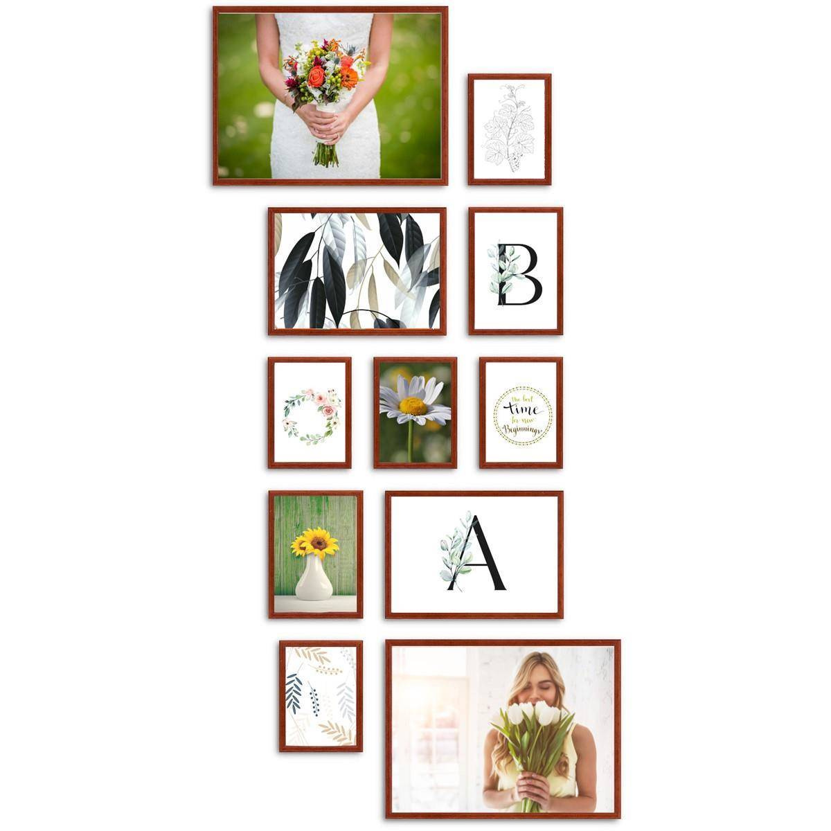 - Zestaw ramek w kolorze mahoniowym Presto 5 GF0005 galeria ścienna zawiera ramki do zdjęć: 5 x 13x18 cm, 2 x 15x21 cm, 2 x 21x30 cm, 2 x 30x40 cm. Wymiar całkowity 145x73 cm.